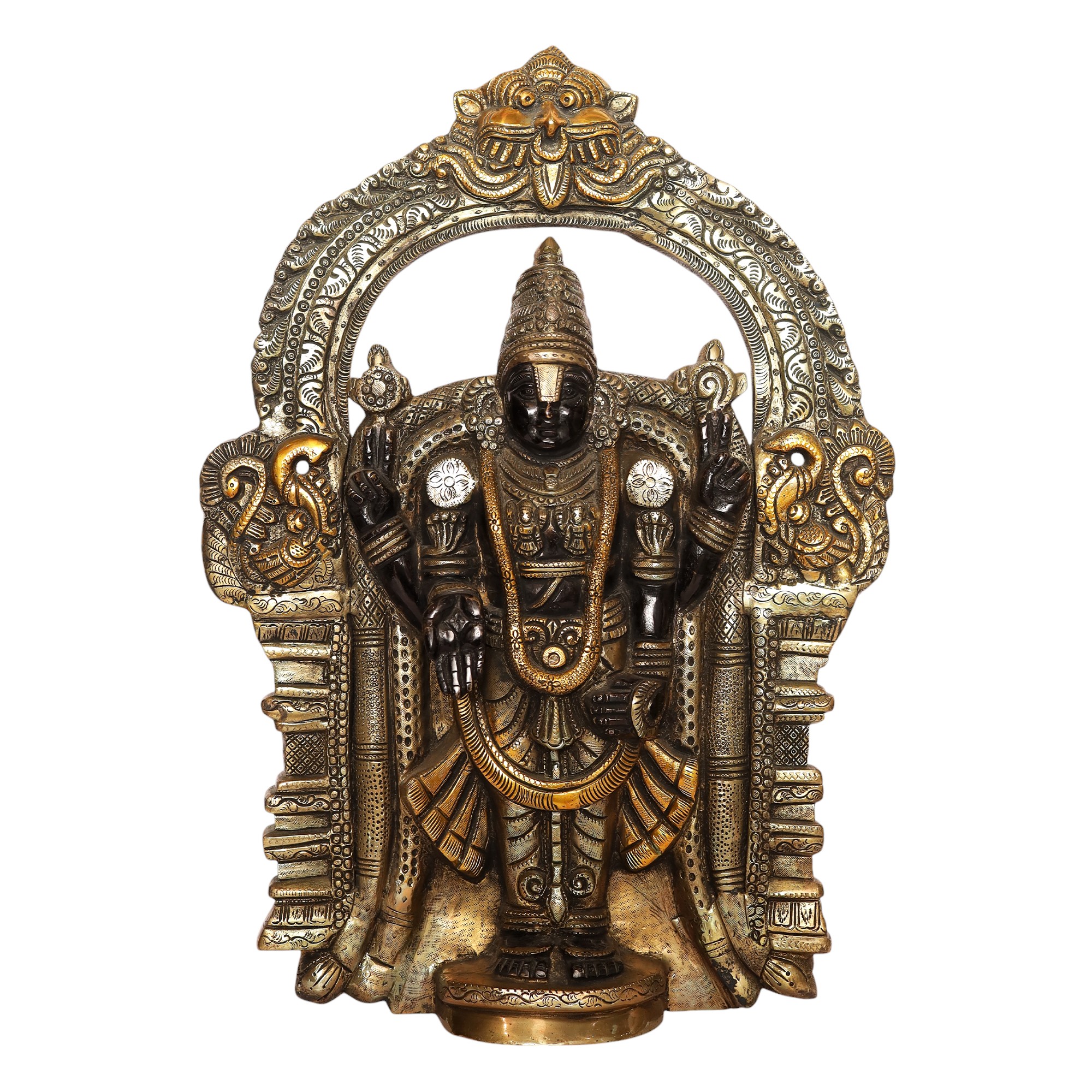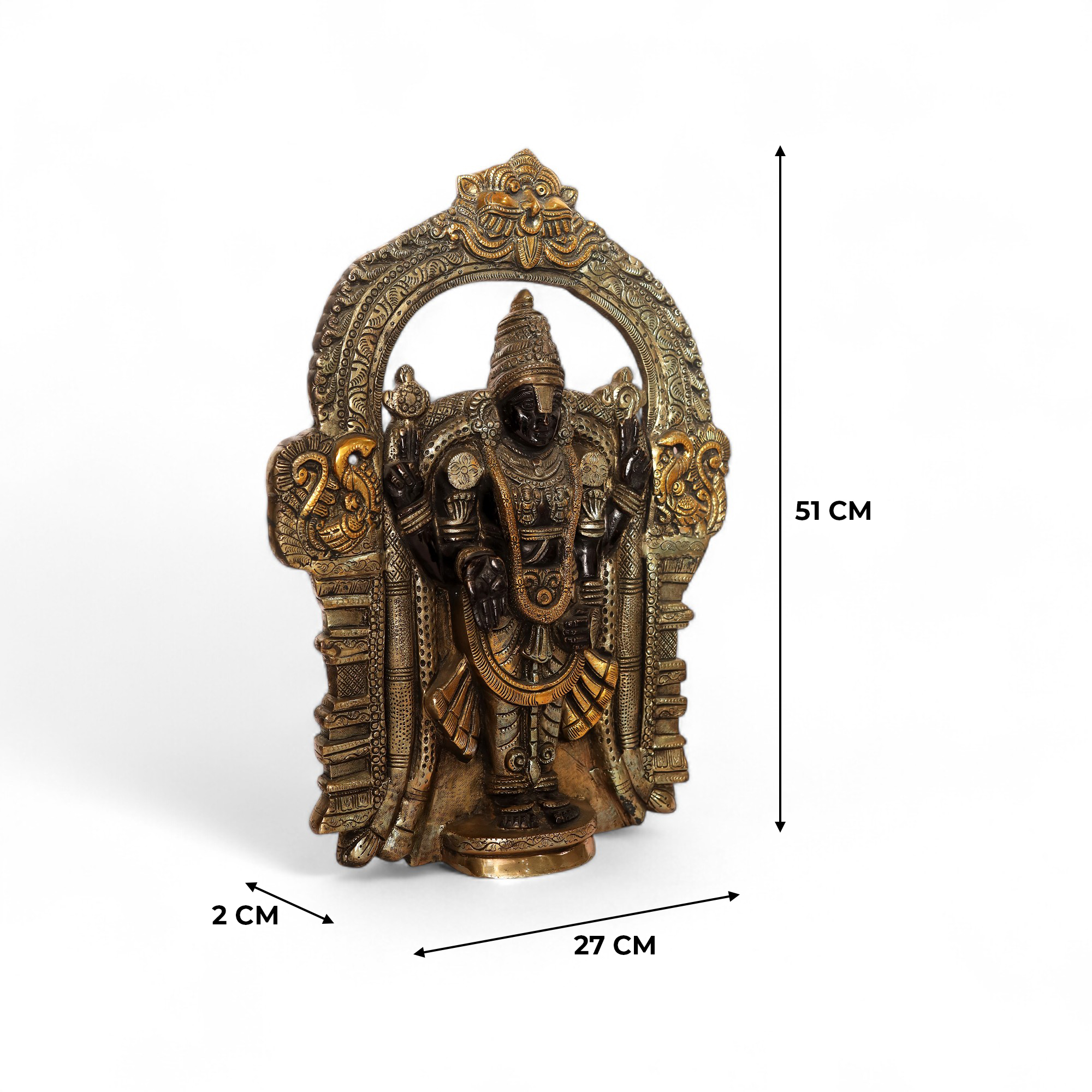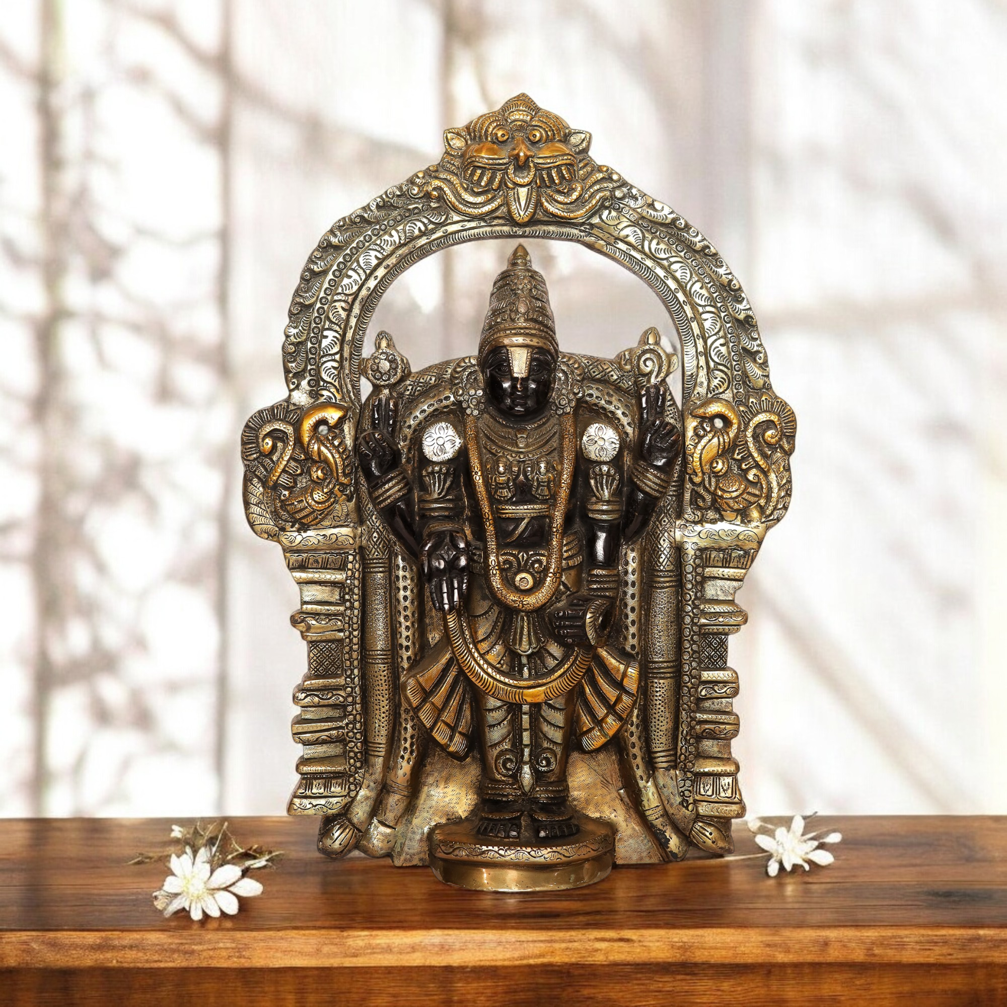 This striking brass idol of Lord Balaji in black and gold finish embodies divine grace, prosperity, and spiritual strength. A powerful presence that brings blessings and serenity to any space.