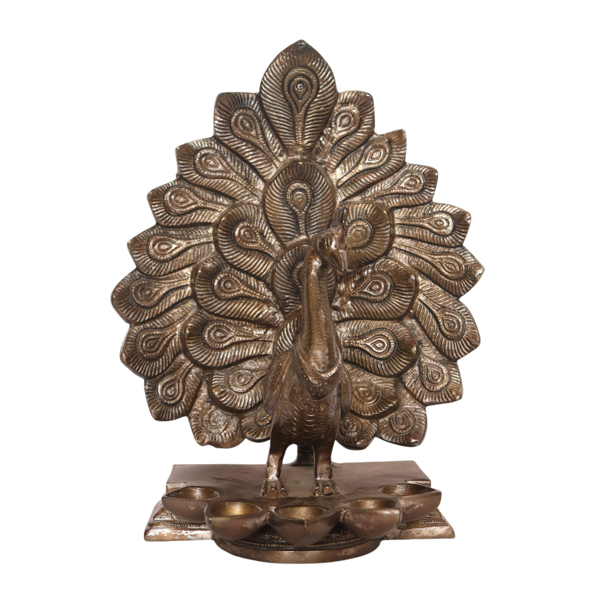 Beautifully crafted brass dancing peacock is a perfect table top for your beautiful home.