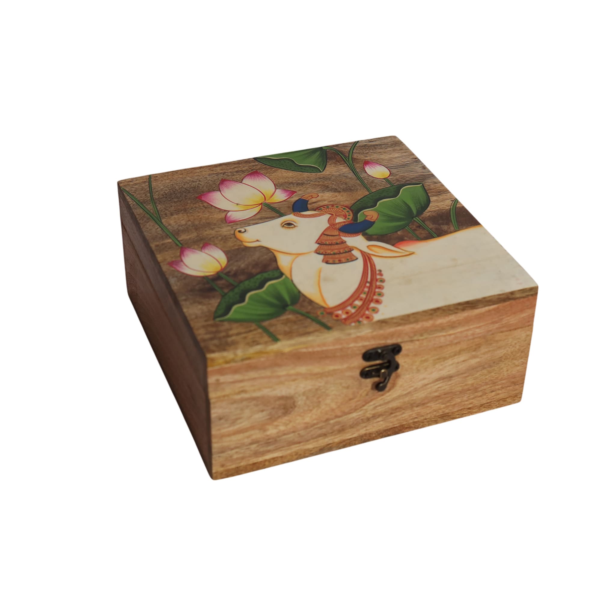 This hand-painted wooden box is a celebration of skilled craftsmanship and timeless design. Carefully crafted from durable wood and adorned with intricate hand-painted details, each piece is unique in its character and charm. Ideal for storing jewellery, keepsakes, or cherished mementos, it adds a touch of warmth and artistry to any space.