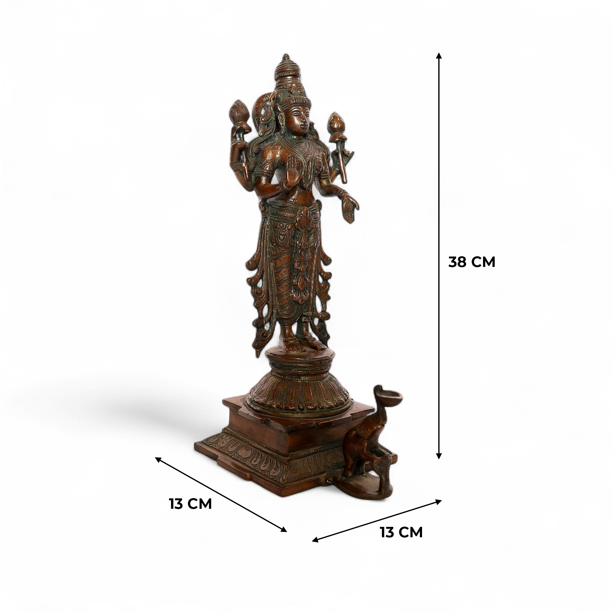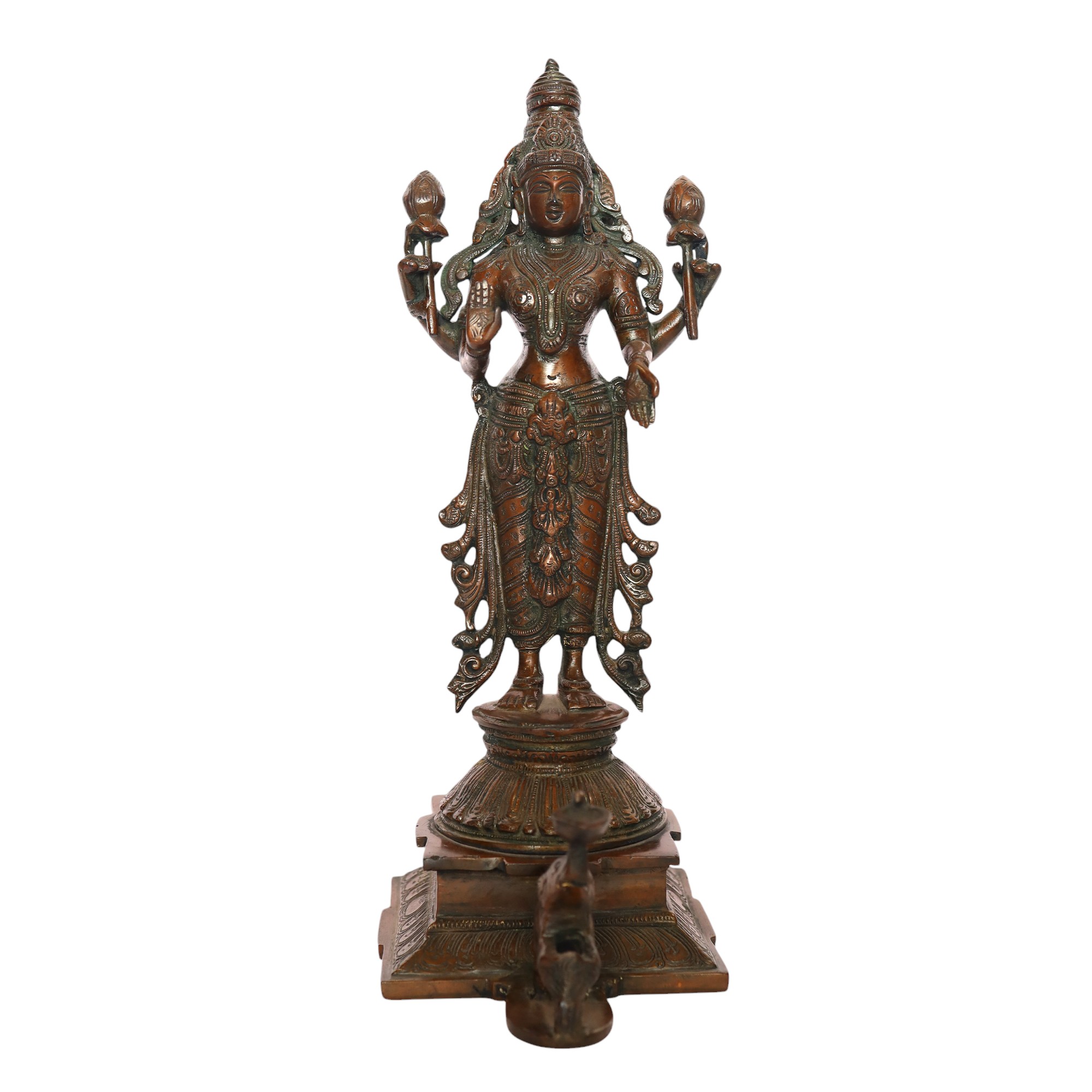 This beautifully crafted brass idol of Lord Vishnu, finished in a warm copper tone, symbolizes preservation, balance, and divine protection.
