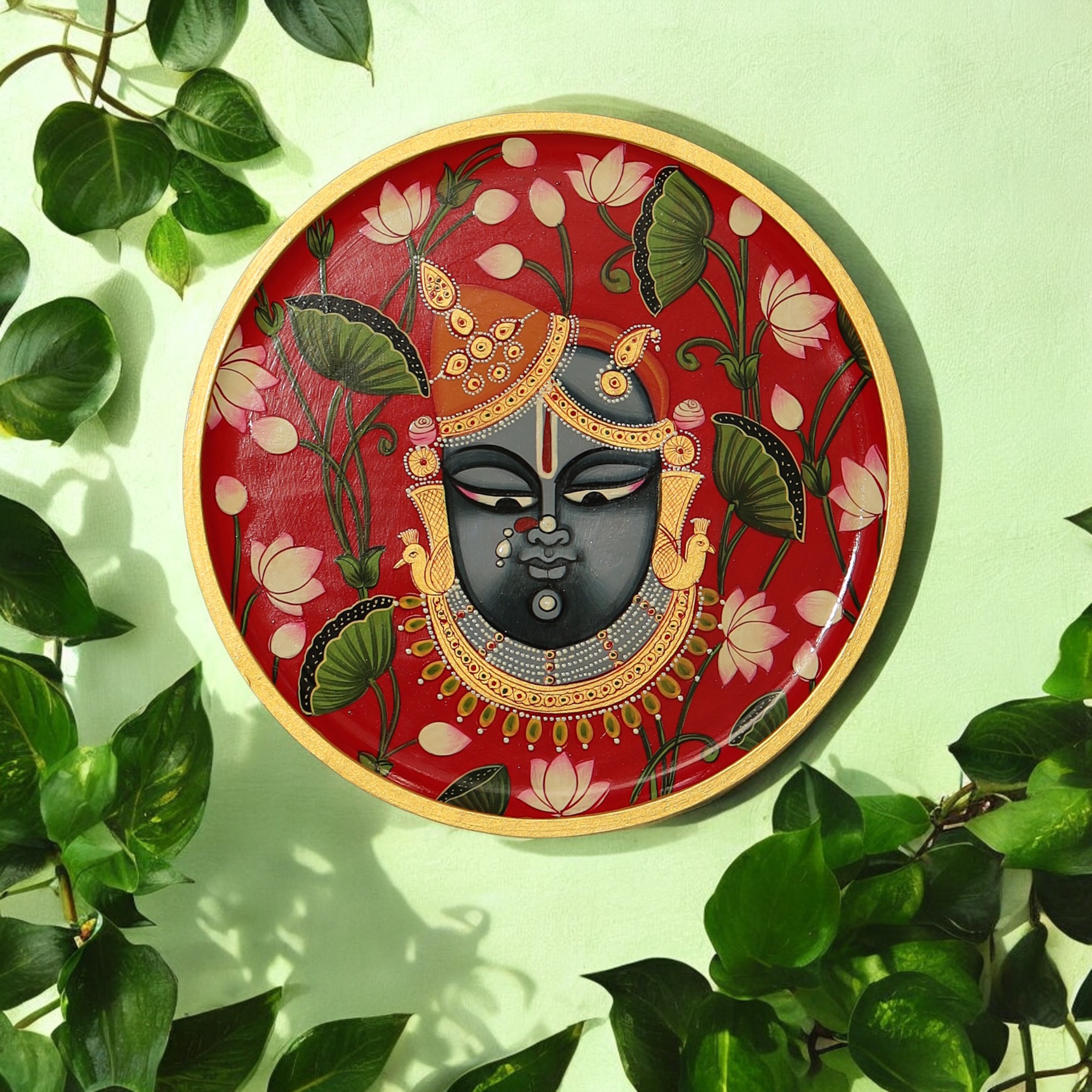 Balaji Pichwai wall plate is a divine expression of grace and protection. Featuring intricate hand-painted details, it captures the serene presence of Lord Balaji, making it a sacred and elegant addition to any spiritual or traditional space.