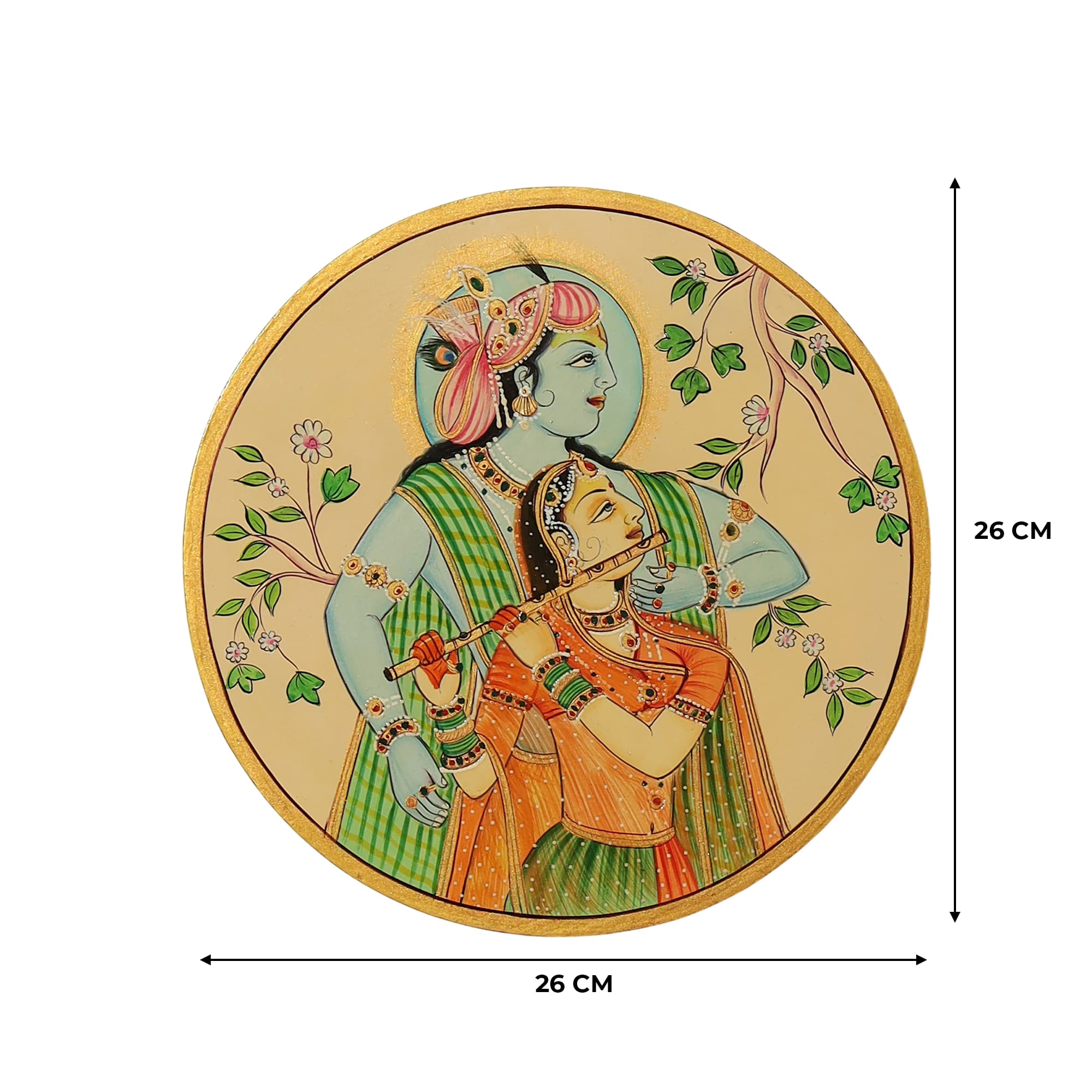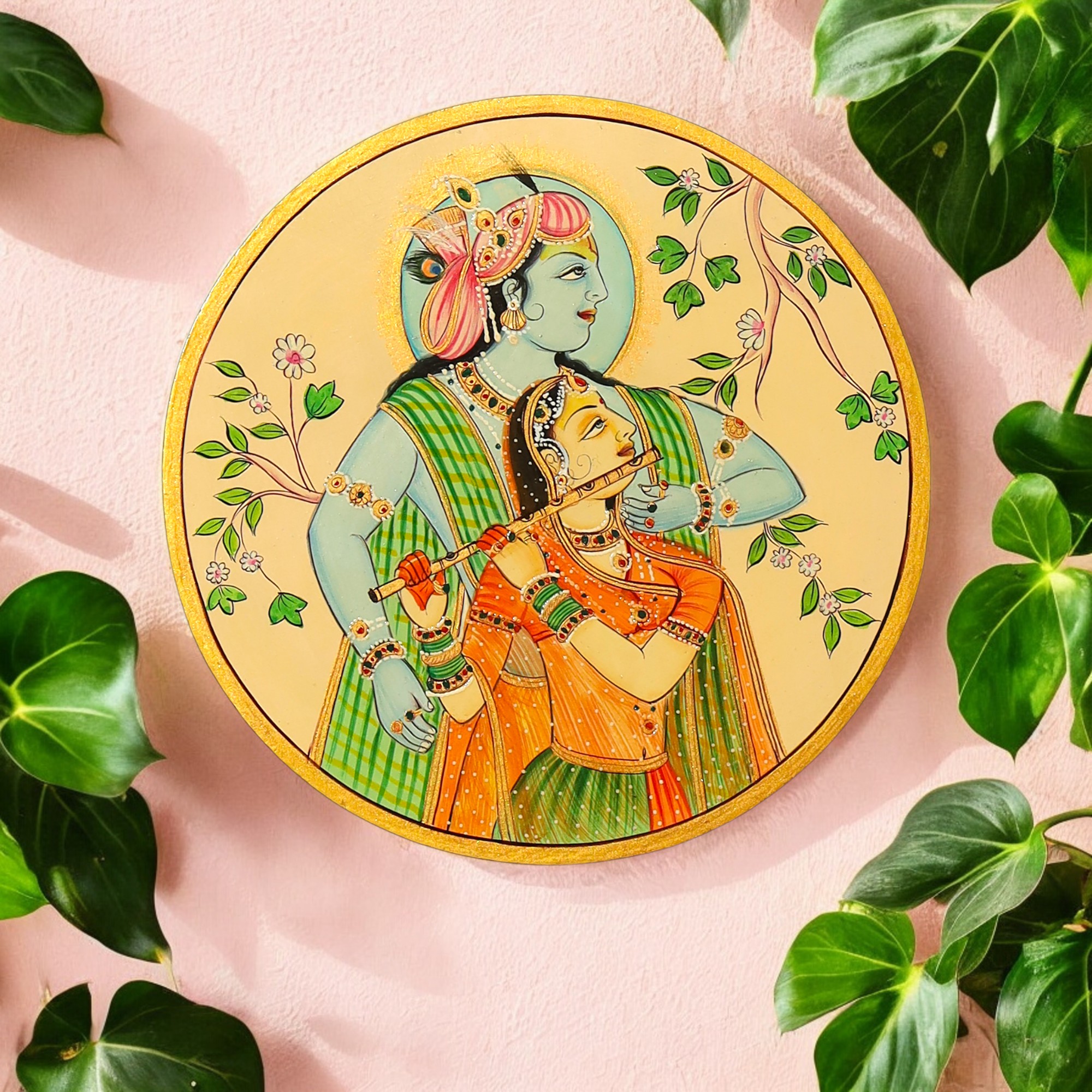 Delicate and vibrant, this wall plate features Radha Krishna hand-painted on a soft light yellow base—bringing warmth, devotion, and charm to any space.