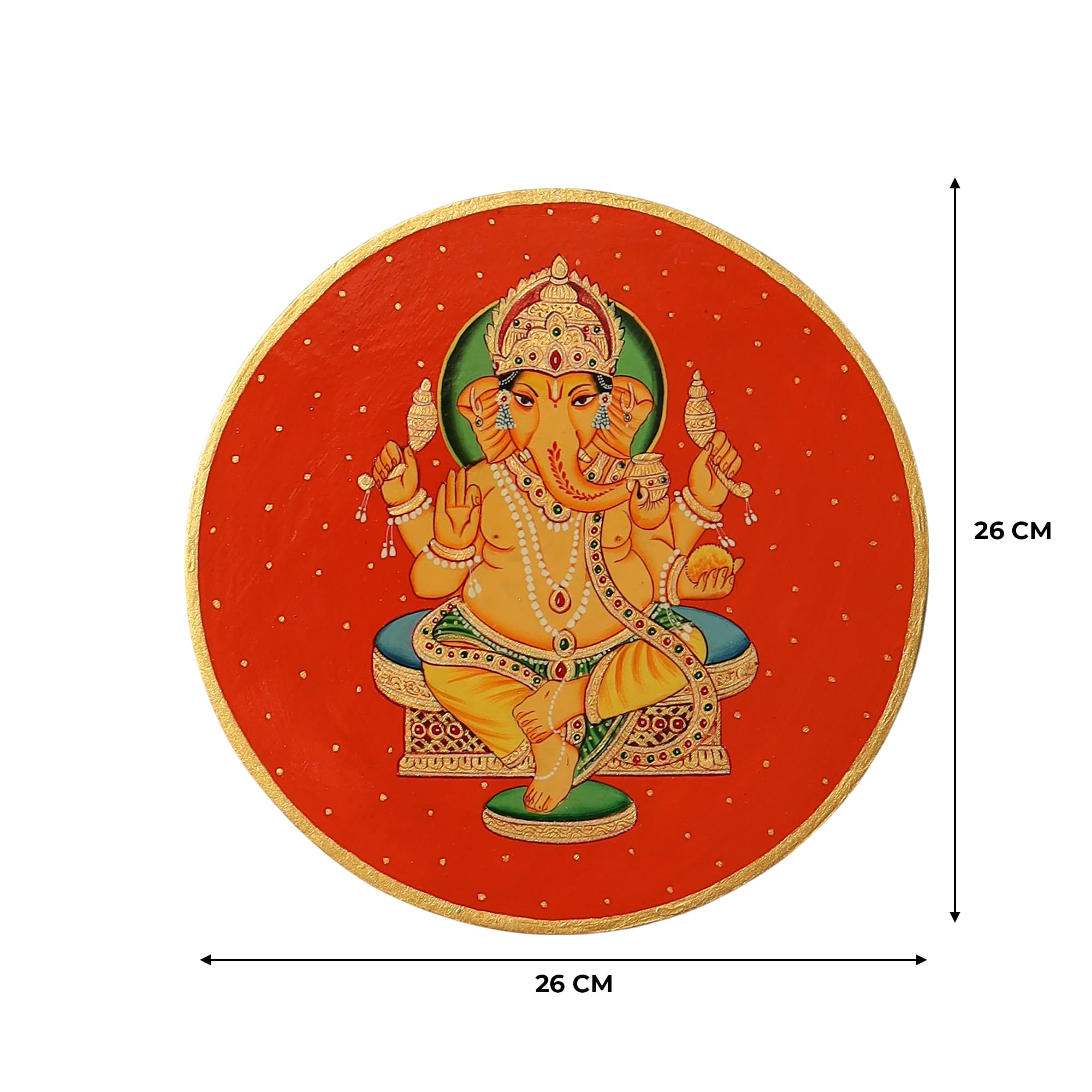A vibrant wall plate featuring hand-painted Lord Ganesha, symbolizing wisdom, prosperity, and artistic tradition—perfect for adding spiritual charm to any space.